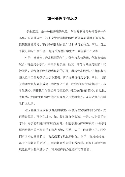 在我们的班主任工作中,学生的迟到,是一件经常发生的事情。