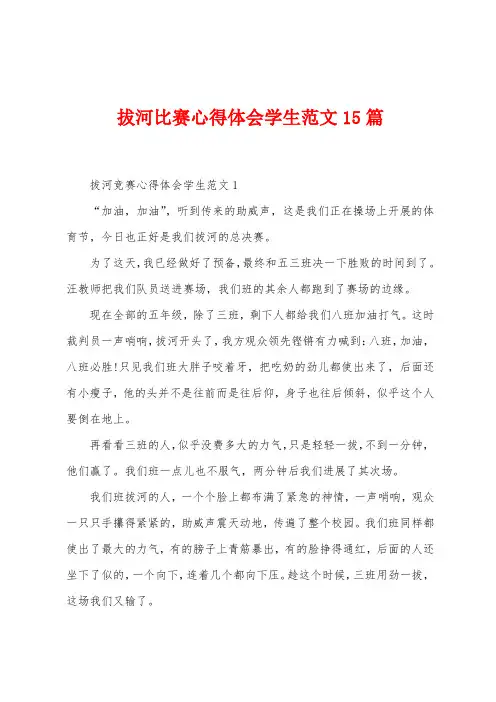 第二段:参与拔河的挑战拔河是一项比较考验团队合作意识和个人体能的运动项目,它需要整个队伍互相协作、默契配合,齐心协力才能顺利完成。