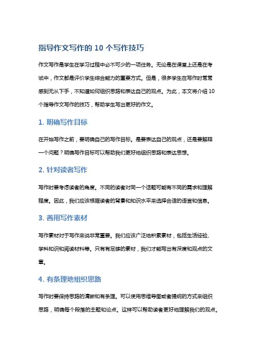 因此,本文将介绍十大提高小学生写作水平的技巧,帮助他们写出流畅、有条理和富有创意的作文。