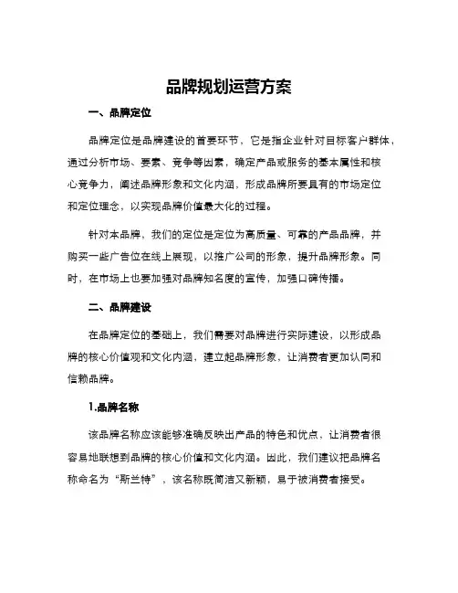 品牌运营规划方案1. 概述品牌运营规划方案,是一份关于如何有效地推广并管理品牌的计划书。