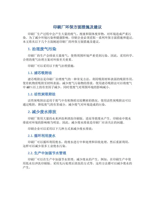 1. 减少废纸和印刷废料的产生废纸和印刷废料是印刷厂最主要的废弃物,对环境造成严重的污染。