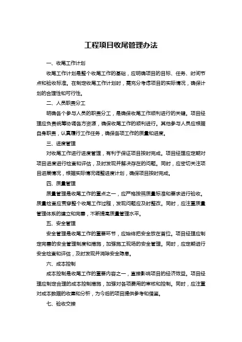 三、项目收尾阶段:项目收尾阶段是项目的结束阶段,也是项目经理需要做好总结和交接工作的阶段。