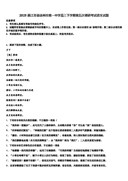 2025届江苏省徐州市第一中学高三下学期第五次调研考试语文试题注意事项1.考生要认真填写考场号和座位序号。