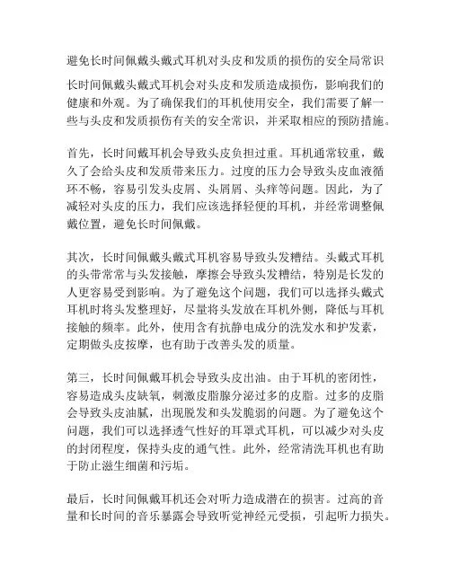 避免长时间佩戴头戴式耳机对头皮和发质的损伤的安全局常识头戴式耳机已经成为现代生活中常见的产品,我们可以享受音乐、电影、语音通话等各种媒体的体验。