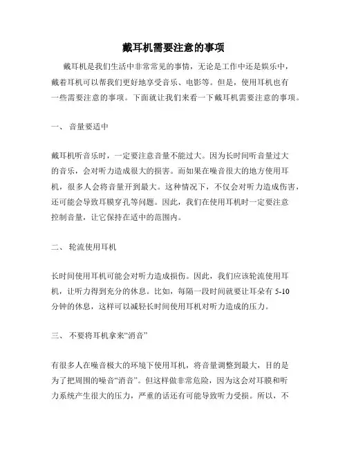 二、避免使用耳机时间过长现代人生活中离不开手机和耳机,但长时间佩戴耳机会对耳朵造成损害。
