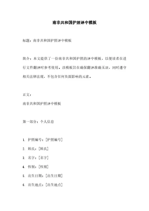第一步:准备材料在办理南非签证之前,首先需要准备好各种必要的材料。