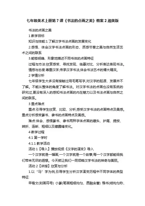 第7课书法的点画之美-湘美版七年级美术上册教案