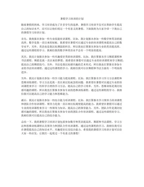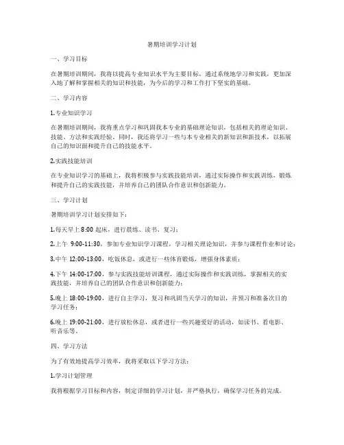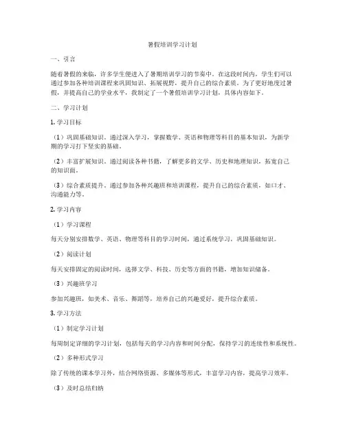 暑假培训学习计划一、引言随着暑假的来临,许多学生便进入了暑期培训学习的节奏中。