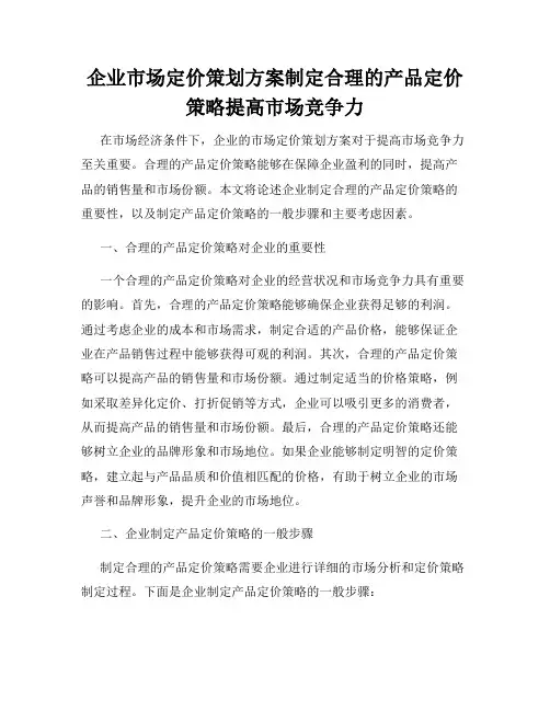 企业市场定价策划方案制定合理的产品定价策略提高市场竞争力在市场经济条件下,企业的市场定价策划方案对于提高市场竞争力至关重要。