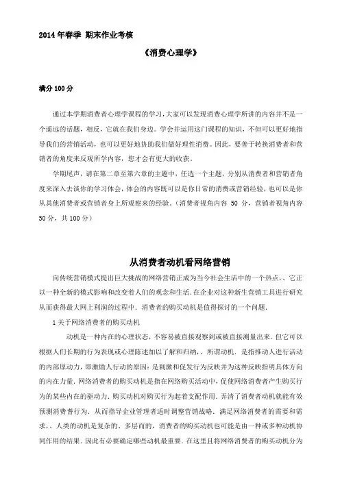 学期尾声,请在第二章至第六章的主题中,任选一个主题,分别从消费者和营销者角度来深入去谈你的学习体会,体会的内容既可以是你日常的消费或营销经验,也可以是你从其他消费者或营销者身上所观察来的经验。(消费者视角内容50分,营销者视角内容50分,共100分)