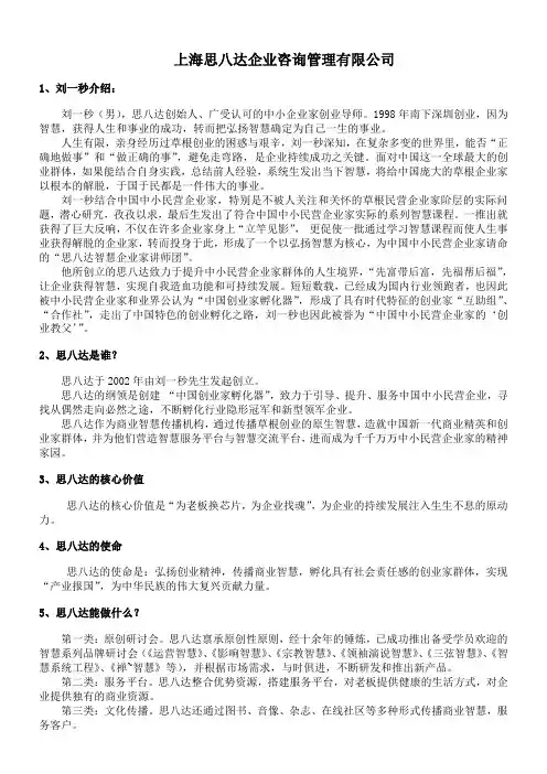 上海思八达企业咨询管理有限公司1、刘一秒介绍:刘一秒(男),思八达创始人、广受认可的中小企业家创业导师。