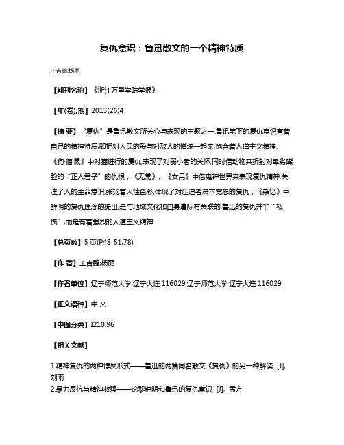 浅析鲁迅作品中的/复仇主义0梁巍王俊杰/横眉冷对千夫指,俯首甘为孺子牛0,这是对鲁迅人格精神的最佳阐释。