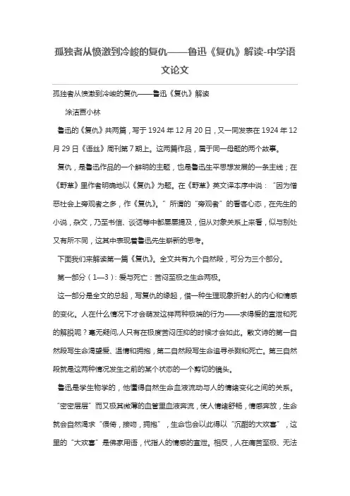 没有对话的“复仇”——鲁迅《复仇》解读刘金玲海南师范大学摘要:复仇是鲁迅一直都在追求的目标,然而这种复仇不仅仅是简单的以牙还牙,而是带有着强烈的指向性和针对性,这种复仇精神在鲁迅的《复仇》中有很明显的体现。