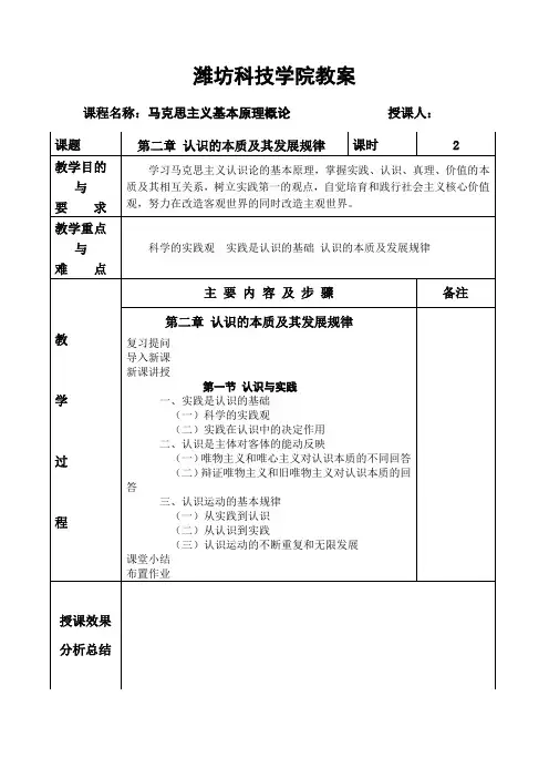 潍坊科技学院教案课程名称:马克思主义基本原理概论授课人:理论上,有利于反对割裂感性认识和理性认识的辩证关系的唯理论和经验论;实践上有利于反对教条主义和经验主义,有利于注重调查研究。