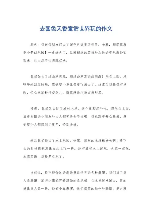 童话世界作文(精选30篇)在工作和生活中,少不了要写各种各样的文档,不论是写制度、写总结、写计划还是写其它的材料,能写出一篇好的文档,体现了一个人的文笔,也体现着一个人的能力,下面是我汇编整理的《童话世界作文(精选30篇)》,希望能够帮到你!童话世界作文篇1世界上根本没有童话世界,可不知怎么的我在不知不觉中进入了迷人的童话世界。