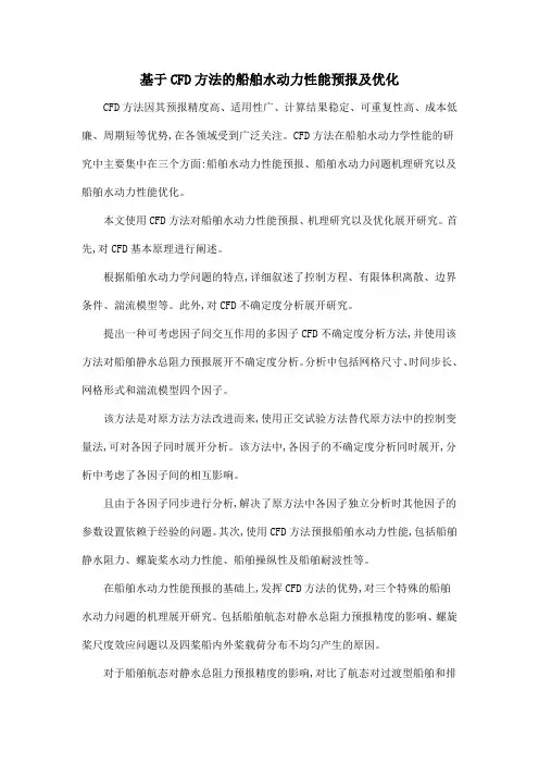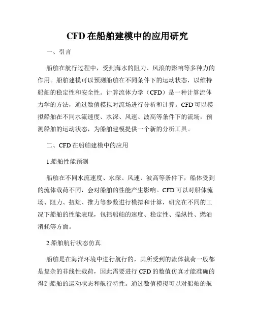 CFD在船舶建模中的应用研究一、引言船舶在航行过程中,受到海水的阻力、风浪的影响等多种力的作用。