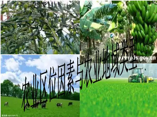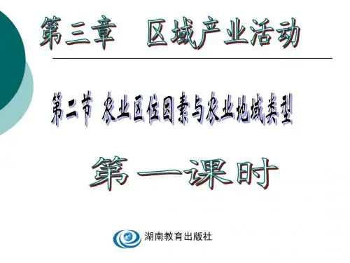 二、农业地域类型1.概念:在不同的地区,利用当地的优势条件,发展各具特色的农业生产,并在地区之间发展商品交换所形成的农业经营单位或地域单位的组合。