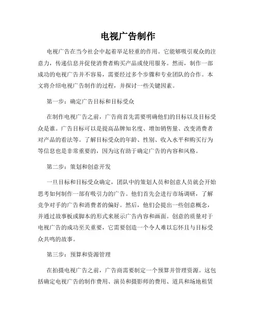 第三步:预算和资源管理在拍摄电视广告之前,广告商需要制定一个预算并管理资源。
