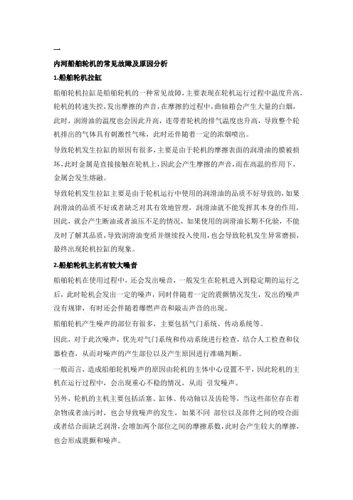 船舶主机常见故障原因船舶主机是船舶的动力装置,负责驱动船舶航行。