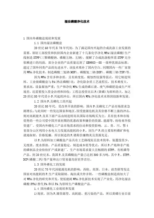 湿法磷酸净化技术及发展1. 引言1.1 湿法磷酸净化技术概述湿法磷酸净化技术是一种常见的工业废水处理技术,用于去除废水中的磷酸盐,从而达到净化水质的目的。