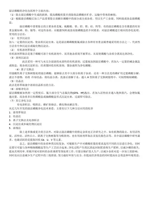 1湿法磷酸净化技术概述1.1化学沉淀法此种方法主要通过将一定沉淀剂加入其中,从而沉淀杂志。