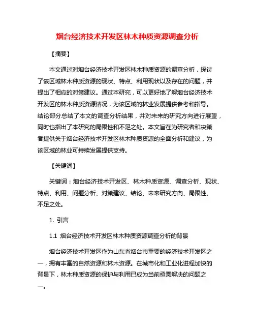 烟台经济技术开发区林木种质资源调查分析1. 引言1.1 烟台经济技术开发区林木种质资源调查分析概述烟台经济技术开发区位于山东半岛的东部,拥有丰富的林木种质资源。