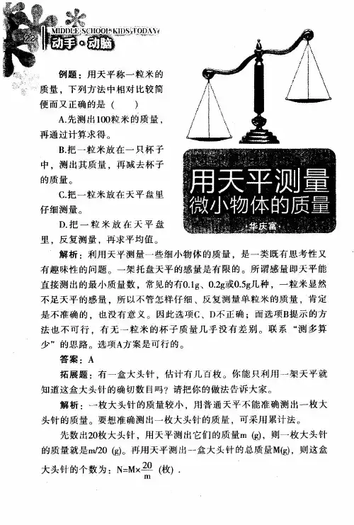 3. 天平可以测量不同物体的质量,而且往往能给出精确可靠的结果。