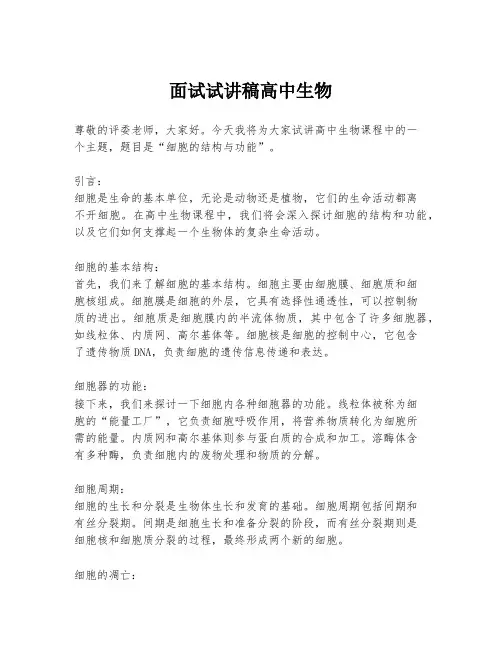 面试试讲稿高中生物尊敬的评委老师,大家好。