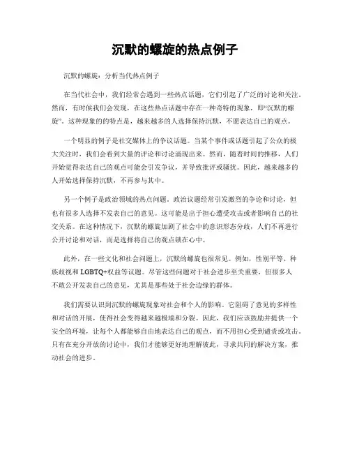新媒体语境下的“沉默的螺旋”新现象近年来,随着新媒体的快速发展,人们的生活方式和信息获取方式也发生了巨大变化。