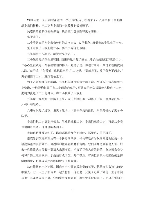 听长辈讲革命故事作文“娃子,过来坐,今天爷爷给你讲个老故事。