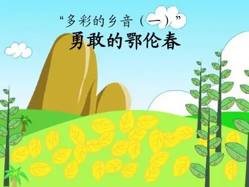 一年级下册音乐说课稿第五单元唱歌《勇敢的鄂伦春》人教版一. 教材分析《勇敢的鄂伦春》是人教版一年级下册音乐教材第五单元的一首歌曲。