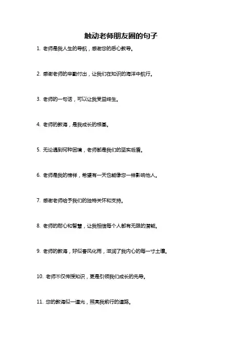 ⽼师对我影响最深的⼀句话⽼师对我影响最深的⼀句话⽼师像我们前进路上的指南针;是我们开启成功之门的⾦钥匙。