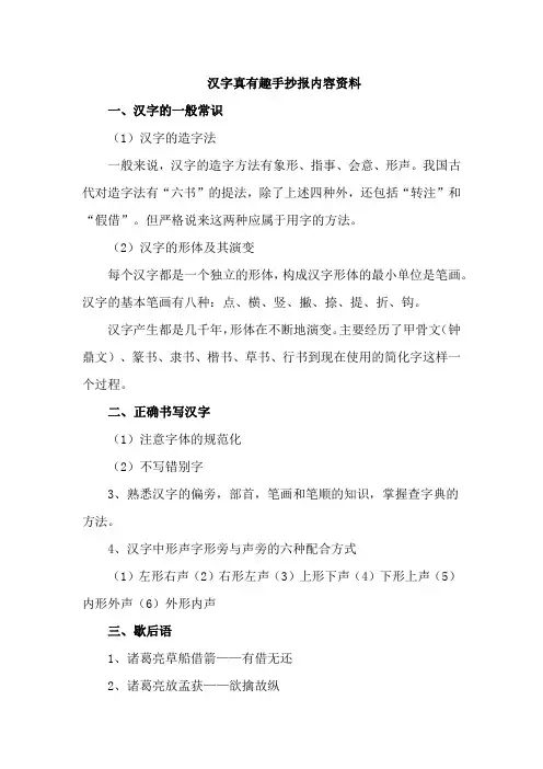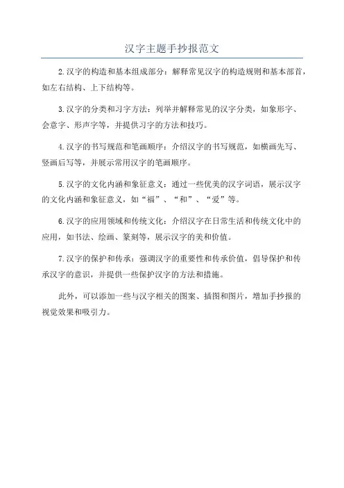 关于汉字的手抄报内容汉字是中国传统文化的瑰宝,也是世界上使用人数最多的文字。