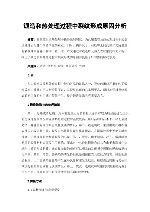Internal Combustion Engine&Parts0引言在进行锻造与热处理的过程中,裂纹的出现是很常见的事情,在所有的锻造与热处理的过程中,不可能不出现裂纹。