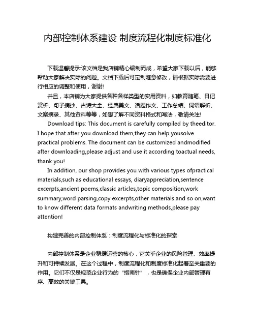 流程制度化的重要性流程制度化是指将企业运作中的各项工作以标准化、规范化的方式进行管理和执行。