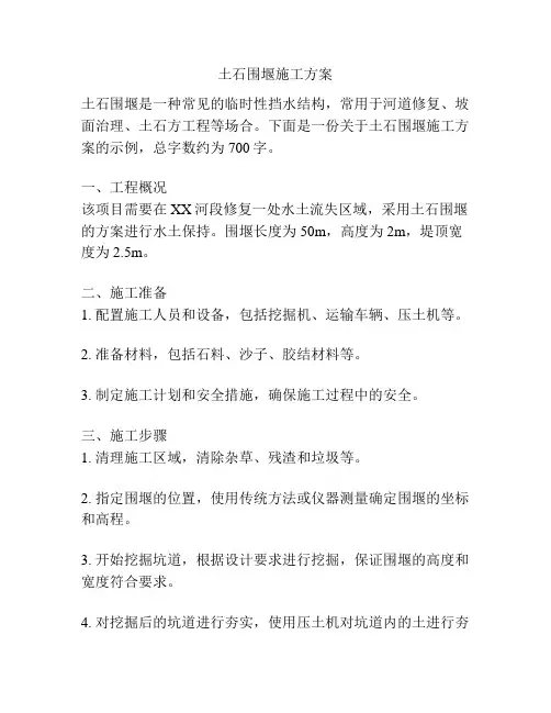 本文档将介绍土石围堰的施工方案,包括选址、设计、施工过程和质量控制等内容。