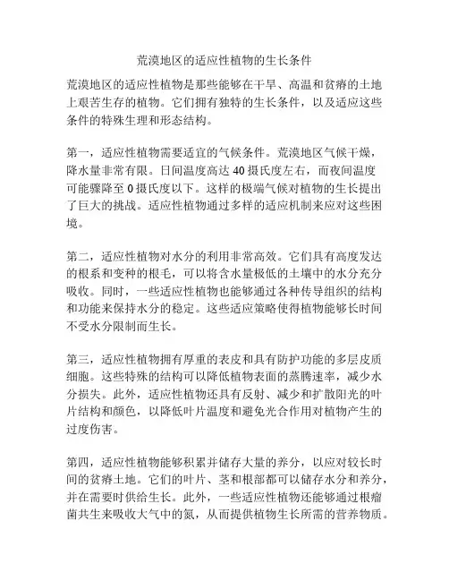 荒漠地区的适应性植物的生长条件荒漠地区的适应性植物是那些能够在干旱、高温和贫瘠的土地上艰苦生存的植物。
