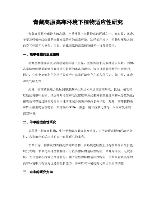 青藏高原高寒环境下植物适应性研究青藏高原是全球最大的高原,也是世界上海拔最高的区域之一。