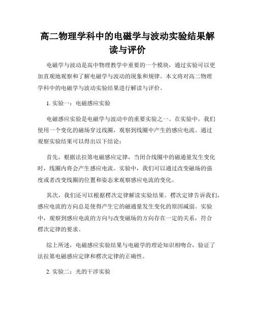 高二物理学科中的电磁学与波动实验结果解读与评价电磁学与波动是高中物理教学中重要的一个模块,通过实验可以更加直观地观察和了解电磁学与波动的现象和规律。