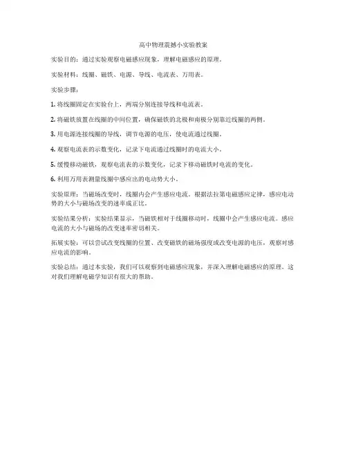 高中物理教案:电磁感应现象的实验探究一、引言在高中物理教学中,电磁感应是一个重要的主题。