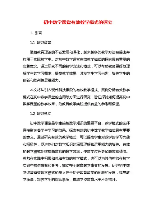 1.2 研究意义初中数学课堂是学生接触数学知识的重要平台,教学模式的选择直接影响着学生学习的效果。
