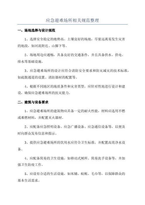 二、公共场所避难场地设置的原则1. 合理布局:避难场地的设置应考虑人员流动性和救援的便利性,布局要合理分散,确保人员在紧急情况下能够快速到达避难场所。