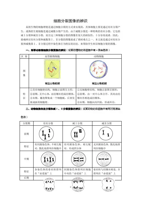 细胞分裂图像的识别作者:贾星柳来源:《新课程·教师》2016年第06期摘要:细胞有丝分裂和减数分裂图像的识别是高中生物学教学的重点和难点。
