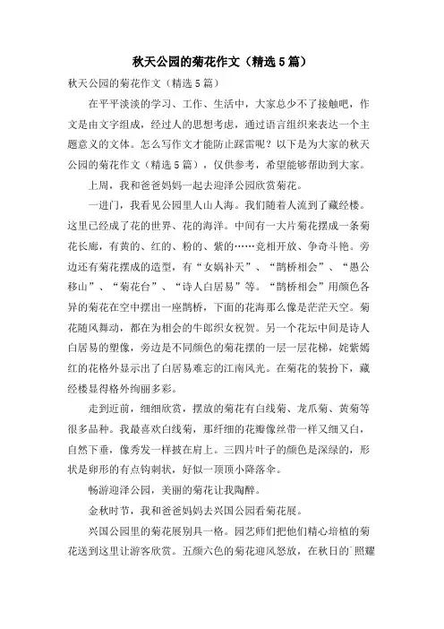 秋天的菊花作文秋天的菊花作文(通用15篇)在现实生活或工作学习中,大家都跟作文打过交道吧,借助作文可以提高我们的语言组织能力。