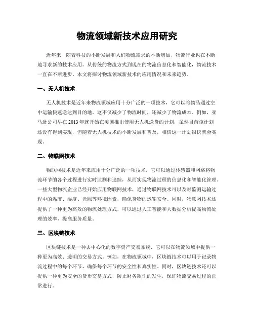 物流领域新技术应用研究近年来,随着科技的不断发展和人们物流需求的不断增加,物流行业也在不断地寻求新的技术应用。