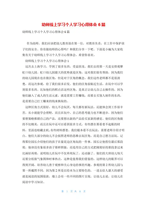 幼师线上学习个人学习心得体会1这次去上海学习,学到了很多东西,受益匪浅。