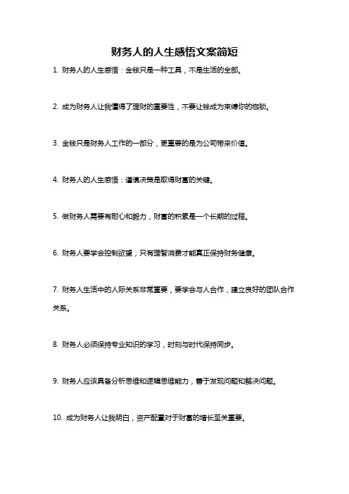 财务人员的座右铭财务人员的座右铭200句职业道德是一种战争状态,我们身处其中,就要常常与自己作斗争。