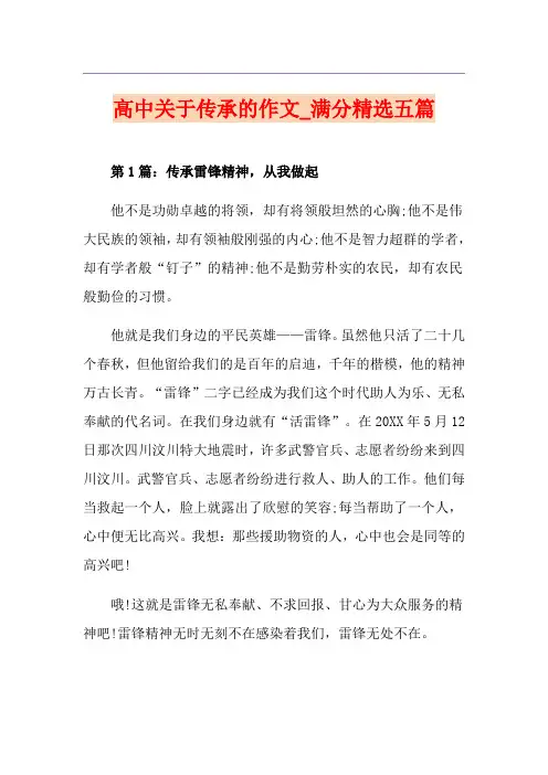 描述传承的作⽂800字5篇有时候,传承是⼀种精神,值得我们学习。