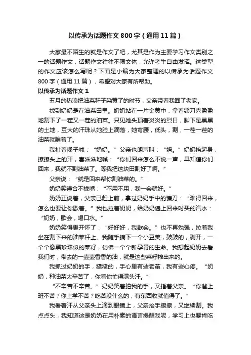 这类型的作文应该怎么写呢?下面是小编为大家整理的以传承为话题作文800字(通用11篇),希望对大家有所帮助。