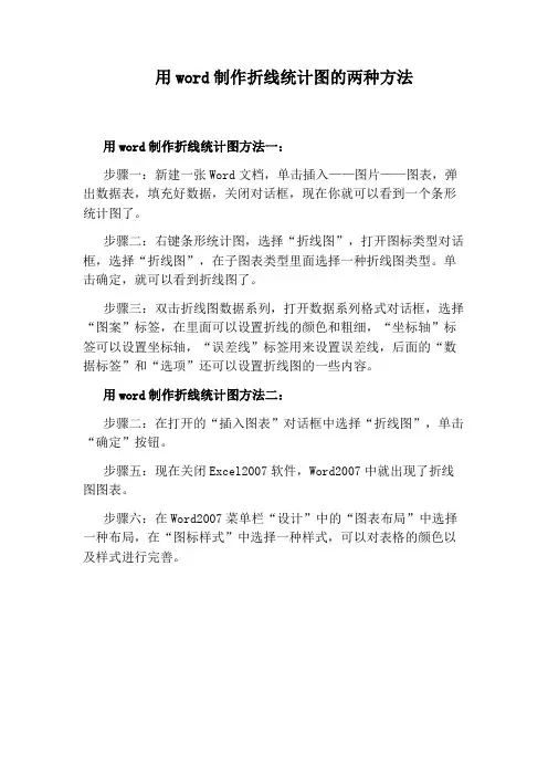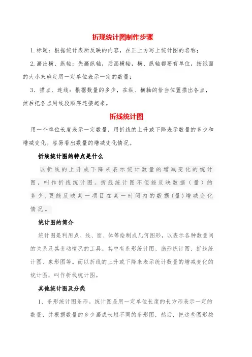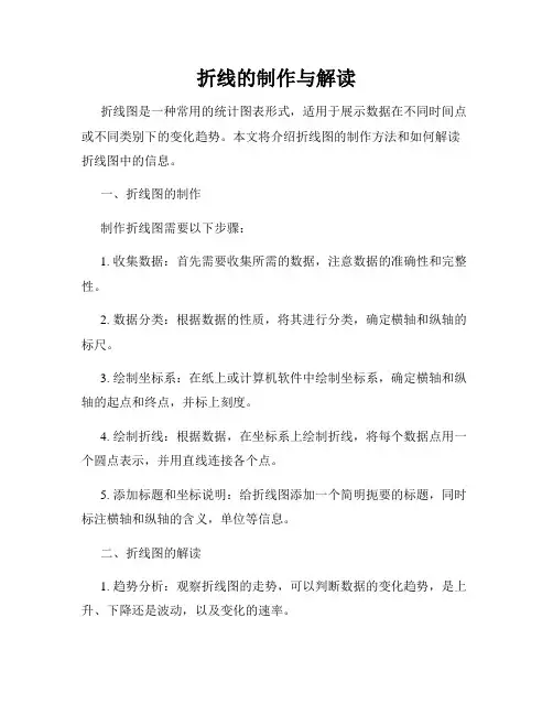 一、折线图的制作制作折线图需要以下步骤:1. 收集数据:首先需要收集所需的数据,注意数据的准确性和完整性。